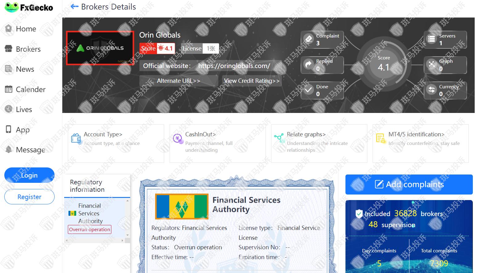 This broker is called Orin Globals, which has been established for 1 year and ranks 2766 in the world. At present, there are 0 foreign exchange licenses, and the risk scan shows 6 risks. Investors need to pay attention to relevant risks.