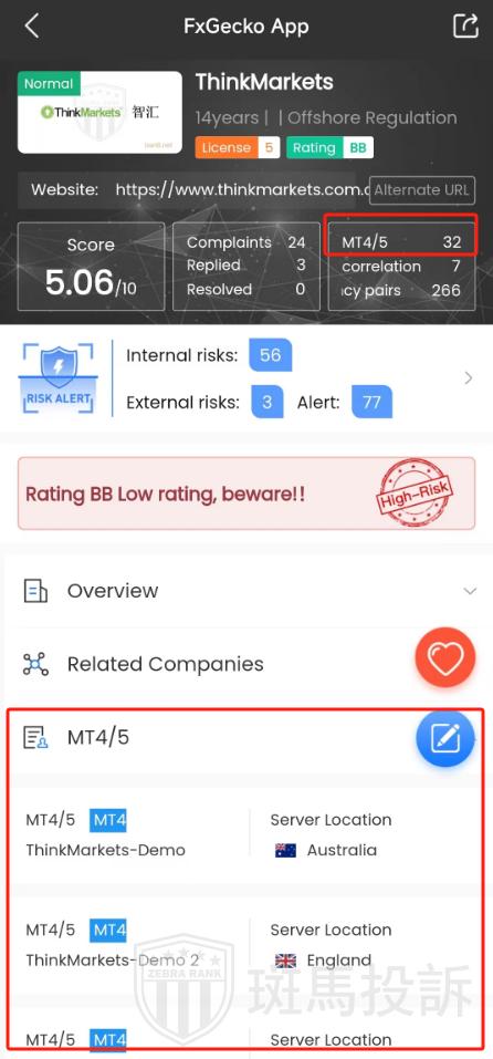 FTI risk warning shows that ThinkMarkets has 136 risks. Investors need to pay attention to the relevant risk alerts for this broker.