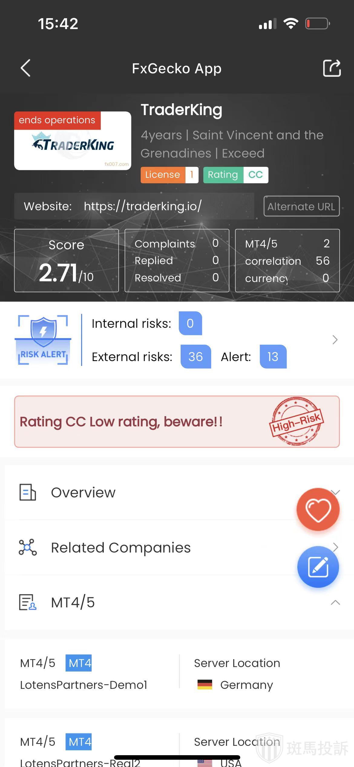 FTI risk warning shows that TraderKing has 49 risks. Investors need to pay attention to the relevant risk alerts for this broker.