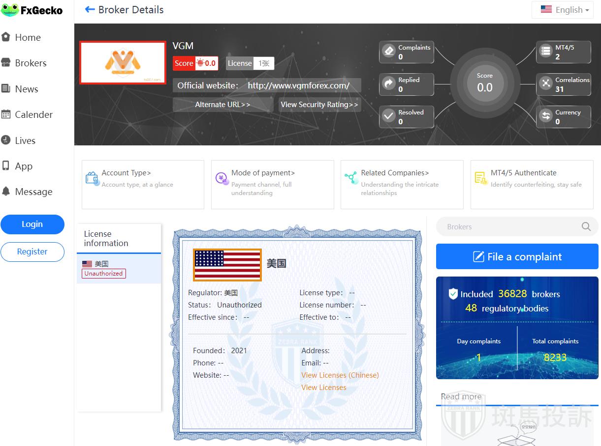 This broker is called VGM, which has been established for one year and ranks 4224 in the world. At present, there are 0 foreign exchange licenses, and the risk scan shows 10 risks. Investors need to pay attention to relevant risks.