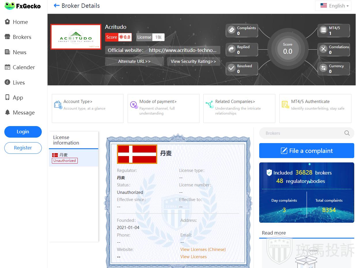 This broker is called Acritudo, which has been established for one year and ranks 4384 in the world. At present, there are 1 foreign exchange licenses, and the risk scan shows 12 risks. Investors need to pay attention to relevant risks.
