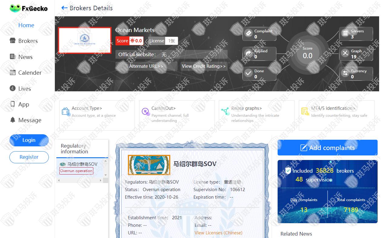 This broker is called Ocean Markets, which has been established for one year and ranks 1932 in the world. At present, there are 0 foreign exchange licenses, and the risk scan shows 2 risks. Investors need to pay attention to relevant risks.
