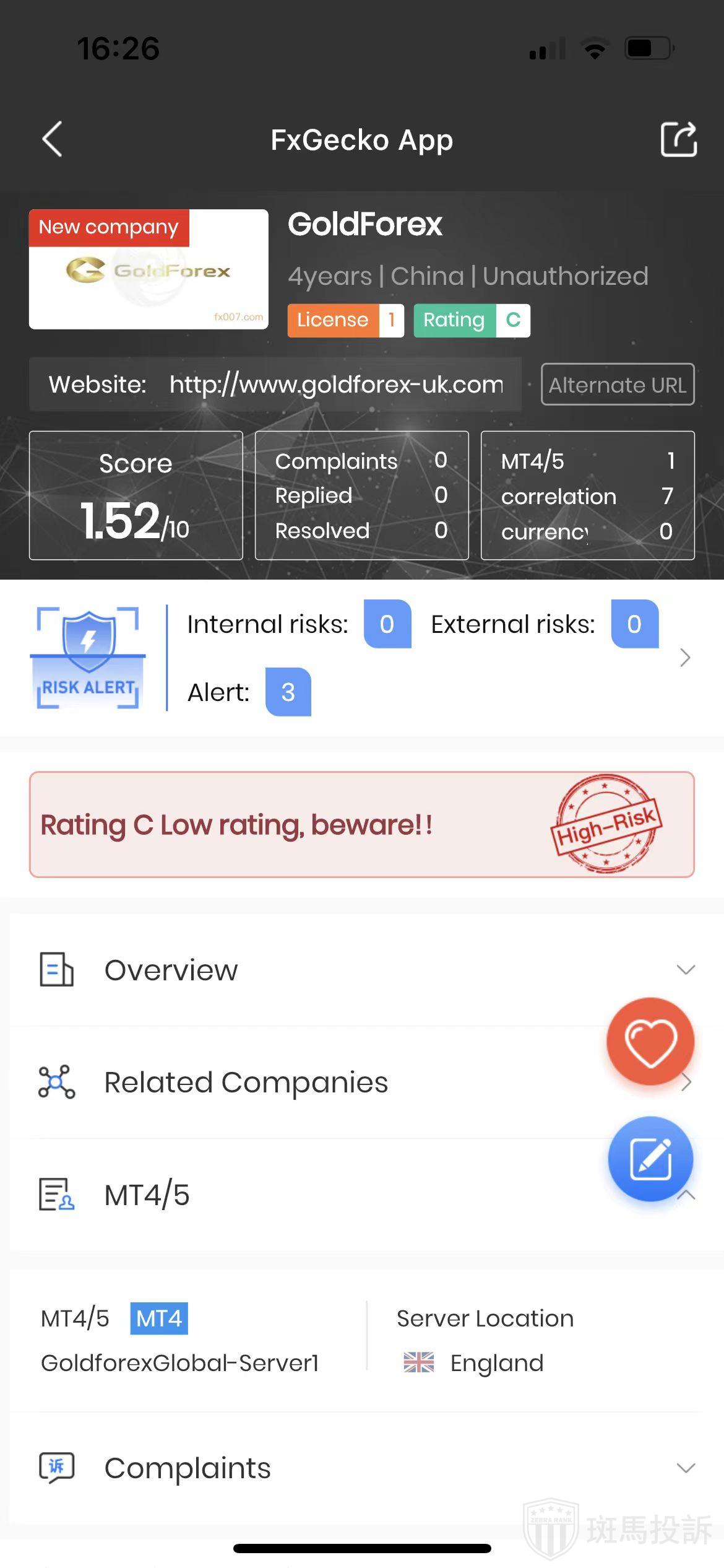 FTI risk warning shows that 金汇集团GoldForex has 3 risks. Investors need to pay attention to the relevant risk alerts for this broker.