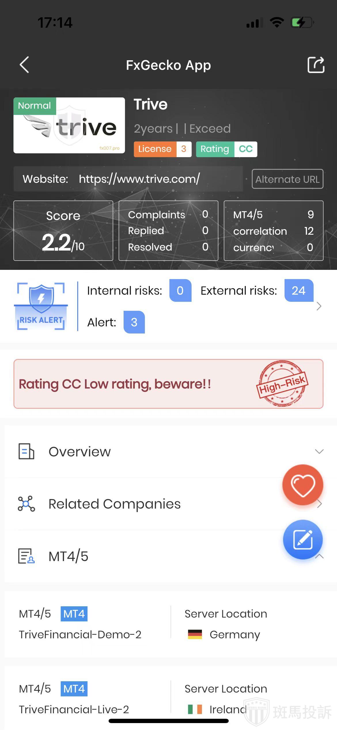 The name of this broker is Trive, founded 2 years ago and ranked 1771 in the world.