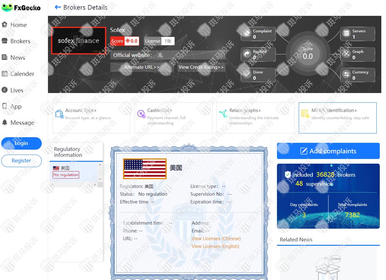 This broker is called Sofex, which has been established for one year and ranks 4767 in the world. At present, there are 0 foreign exchange licenses, and the risk scan shows 1 risks. Investors need to pay attention to relevant risks.