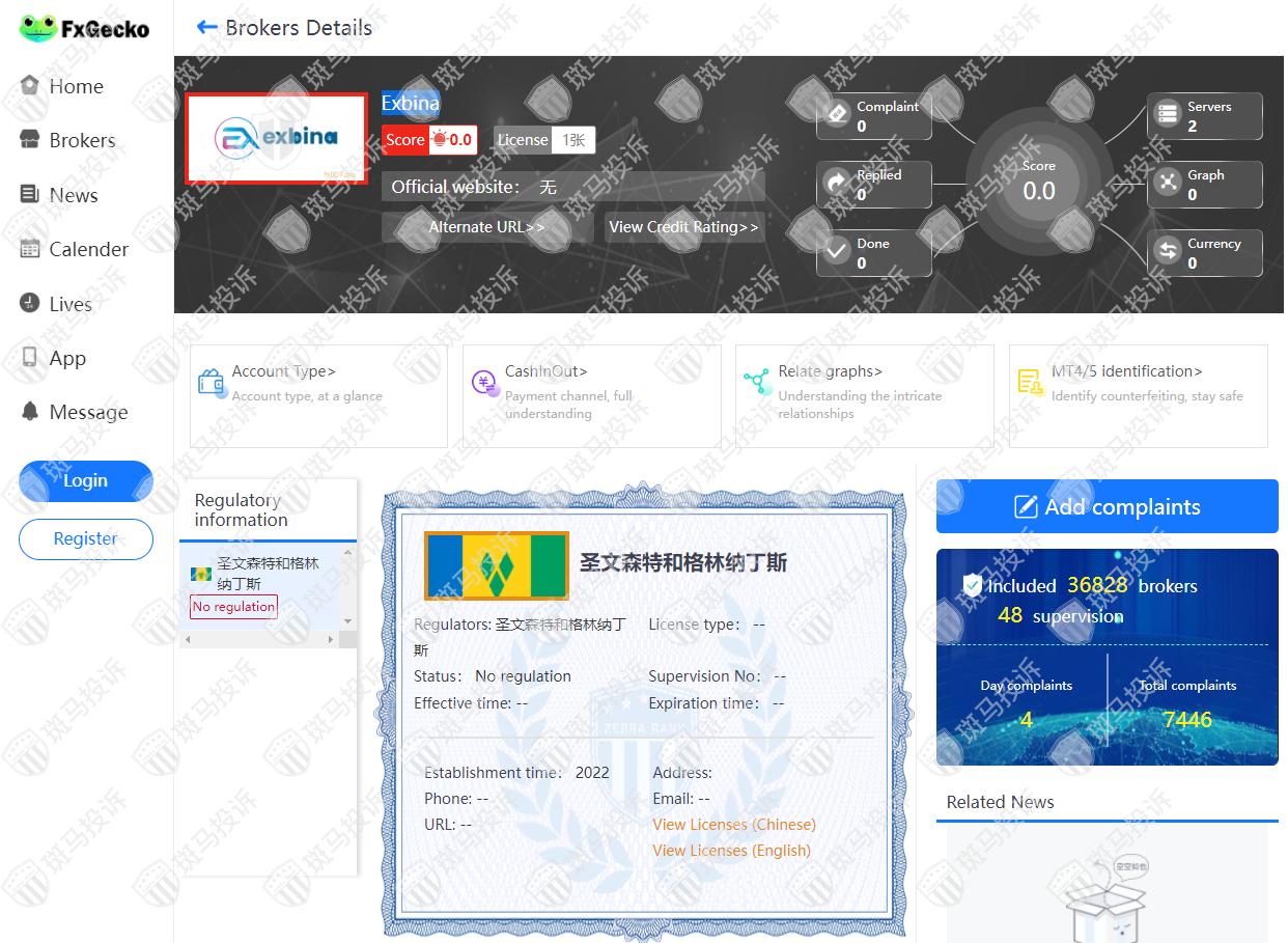 The main white label relationship shows that there are 0 Exbina associated brokers on the Exbina. We need to pay attention to whether the associated brokers are running away. This is the business risk of the brokers and the past business history, which can be used as an important reference condition for selecting brokers. The broker relationship data comes from the data of MetaQuotes.