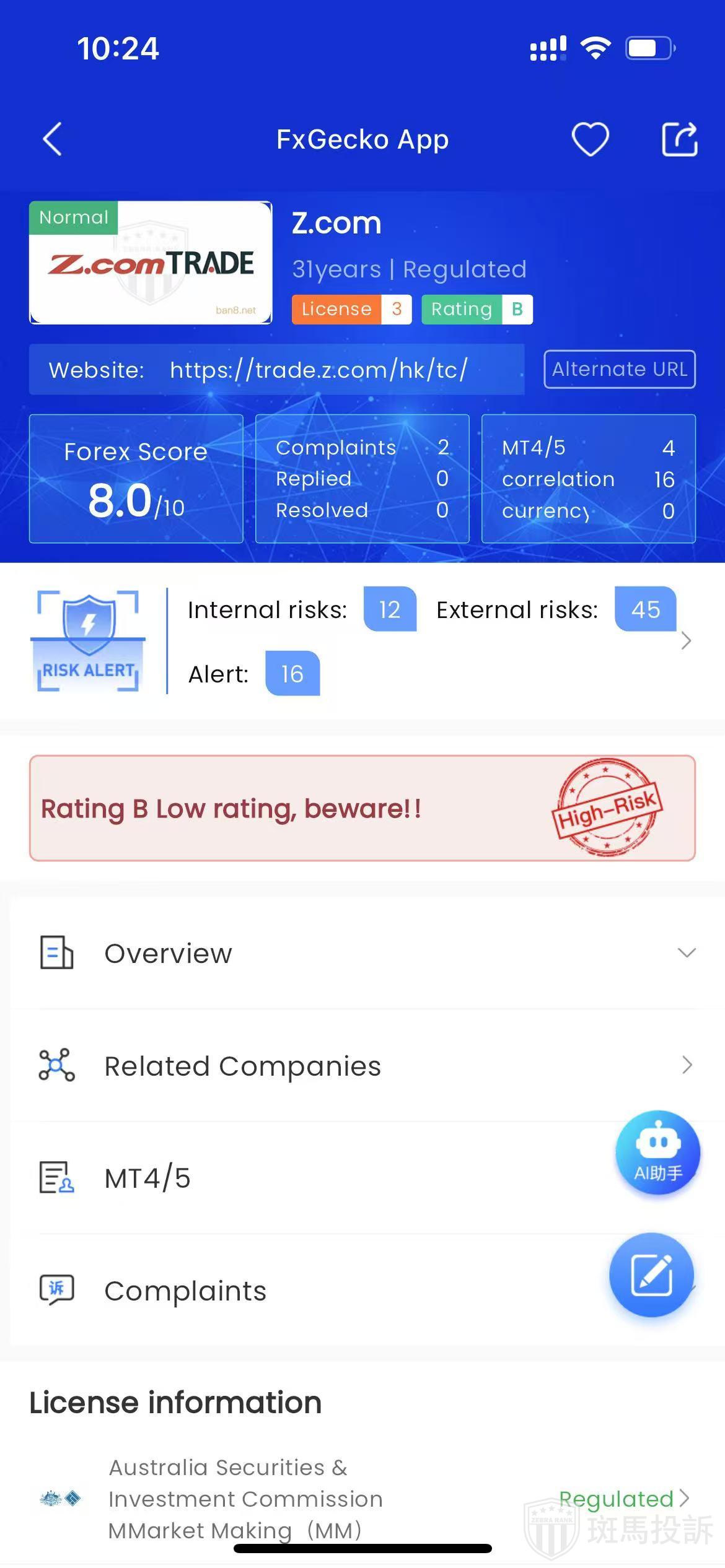 FTI Comprehensive Review: Currently, the official website of Z.com is operating normally. Complaints mainly arise from scams involving fake Z.com platforms. There are fewer negative reviews overall, and the general comments are relatively positive. The platform offers a wide range of tradable assets, although it could improve its handling of complaints.