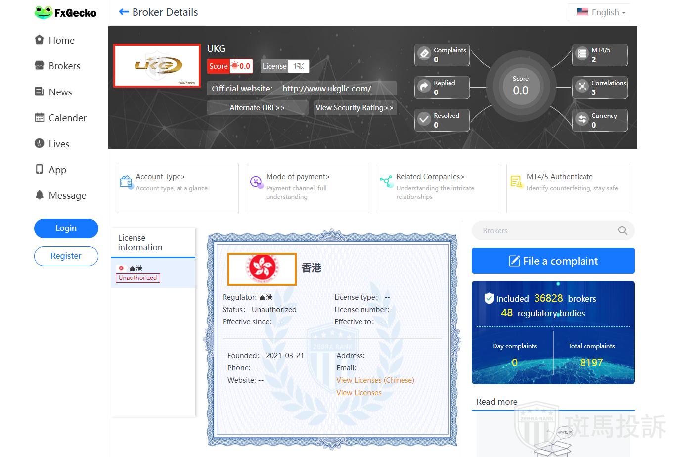 This broker is called UKG, which has been established for one year and ranks 4403 in the world. At present, there is no foreign exchange license,and the risk scan shows 3 risks.Investors need to pay attention to relevant risks.