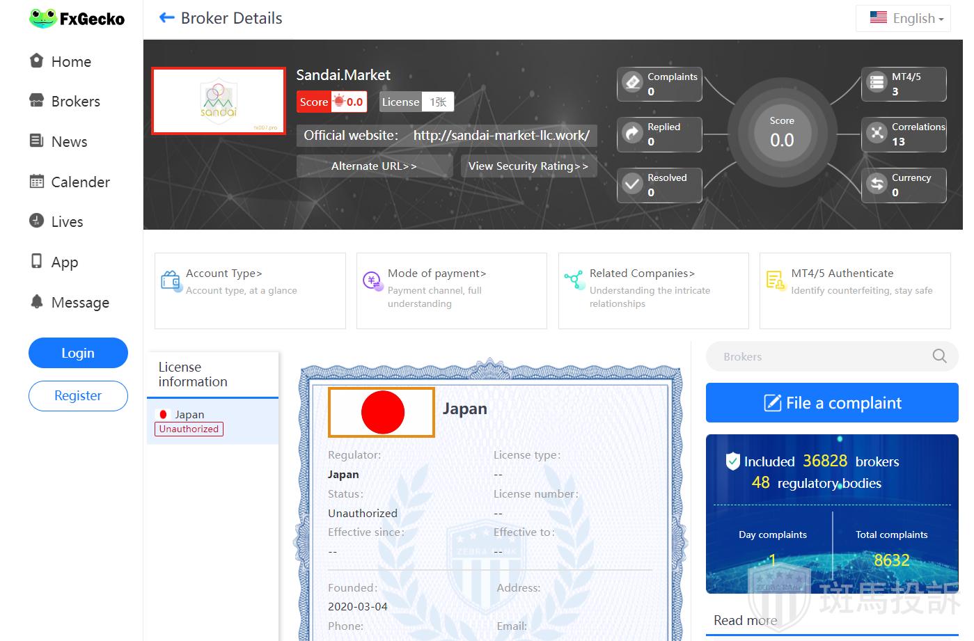 The name of this broker is Sandai.Market, founded 4 years ago and ranked 4084 in the world.