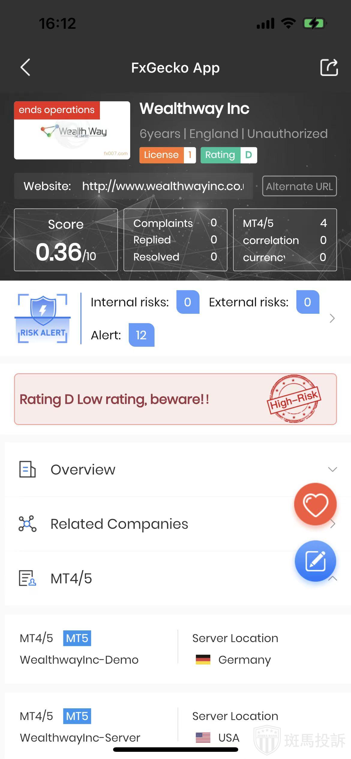 FTI risk warning shows that Wealthway Inc has 12 risks. Investors need to pay attention to the relevant risk alerts for this broker.