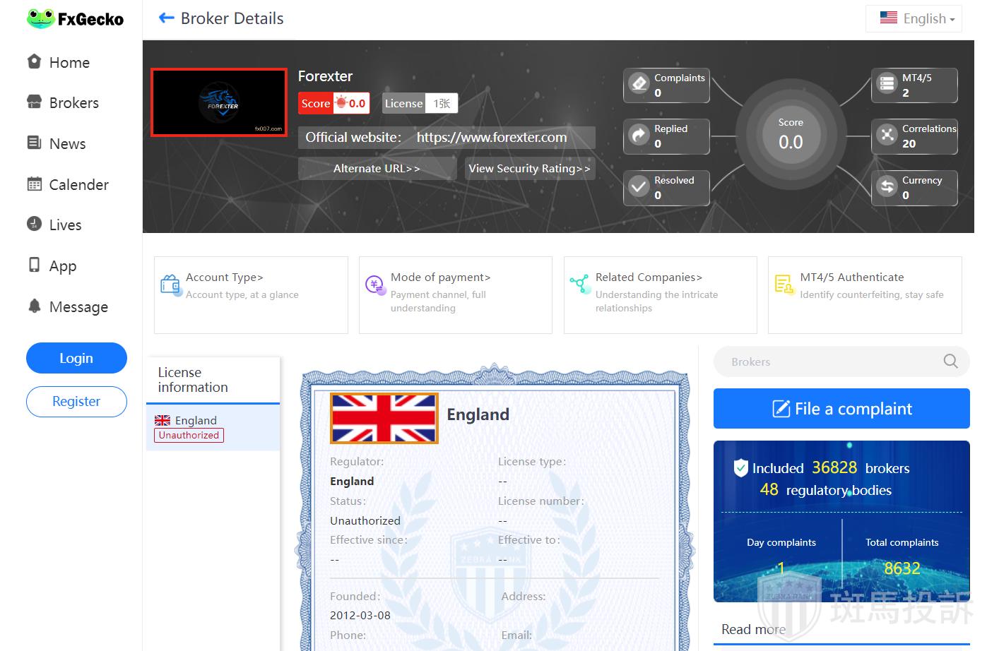 FTI has not received any complaints about Forexter forex broker at the moment.