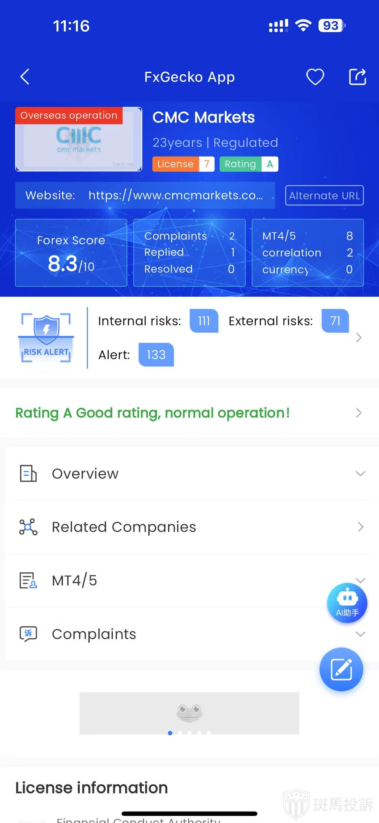 Moreover, reports mention that CMC Markets' investment advisory license from ASIC may involve operating beyond its authorized scope, and the platform has received some complaints over the past period. Therefore, investors should carefully assess these factors and conduct comprehensive research and consideration before trading. If there are any doubts, more information can be sought through relevant regulatory authorities or reputable third-party platforms.