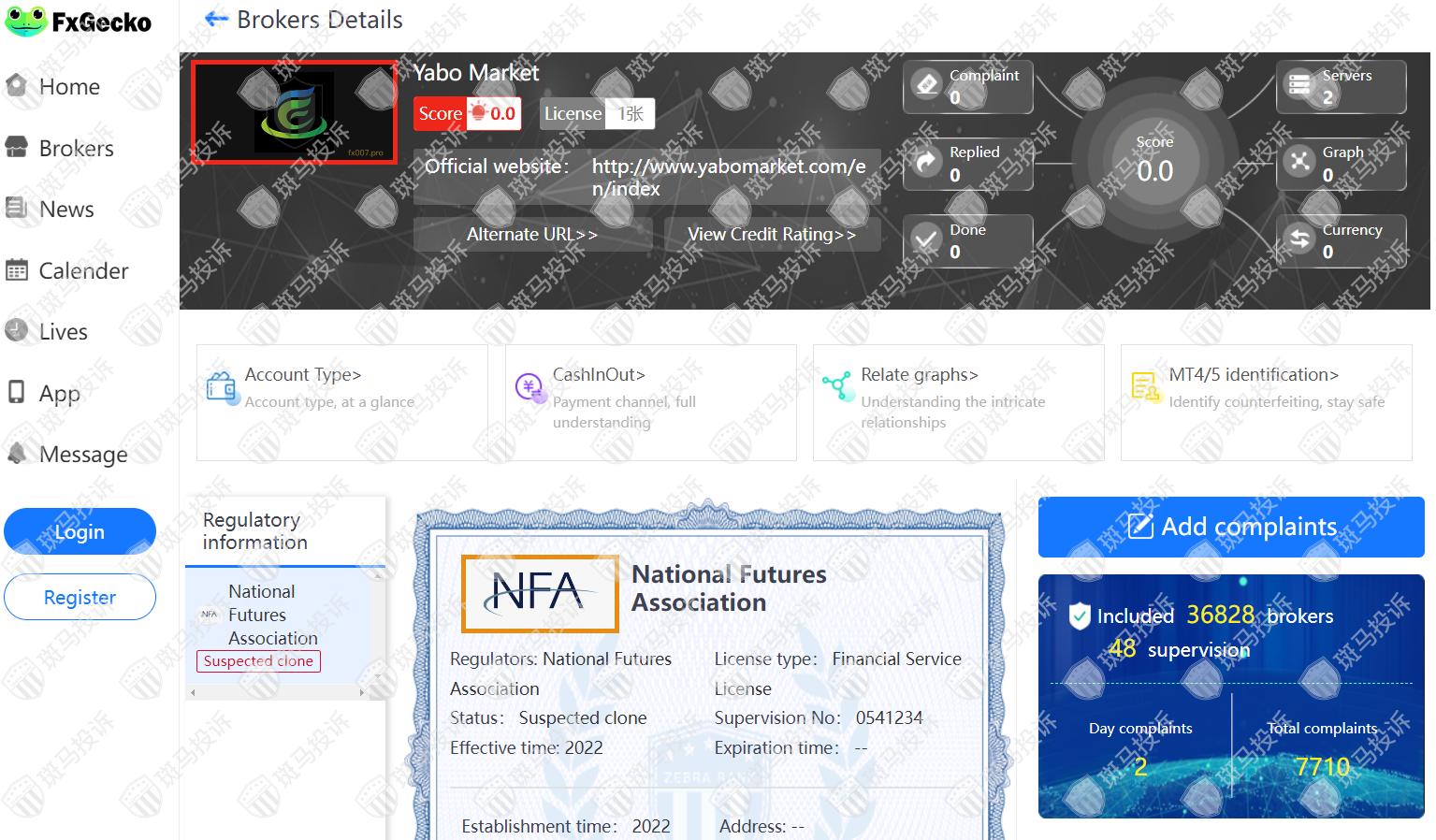 This broker is called Yabo Market which was founded less than 1 year ago and is ranked 4803 in the world. At present, there are 0 foreign exchange licenses, and the risk scan shows 1 risk. Investors need to pay attention to relevant risks.