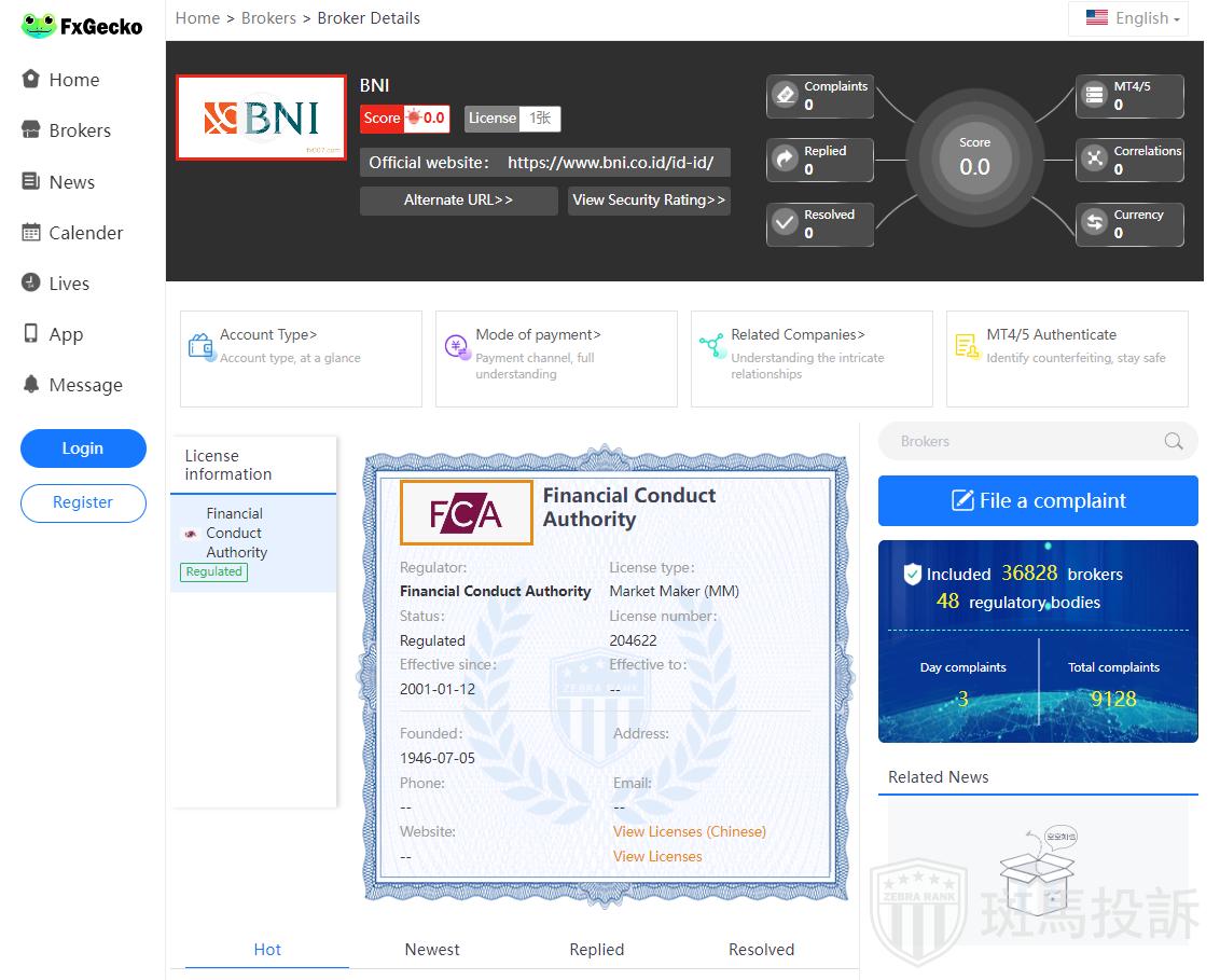 BNI is regulated by the UK's FCA under Regulatory Certificate No. 204622 and has obtained an MM Market Maker license.