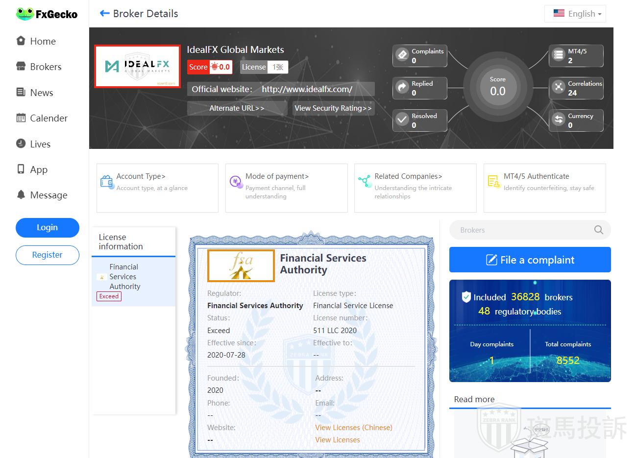 The name of this broker is IdealFX, founded 3 years ago and ranked 2156 in the world.