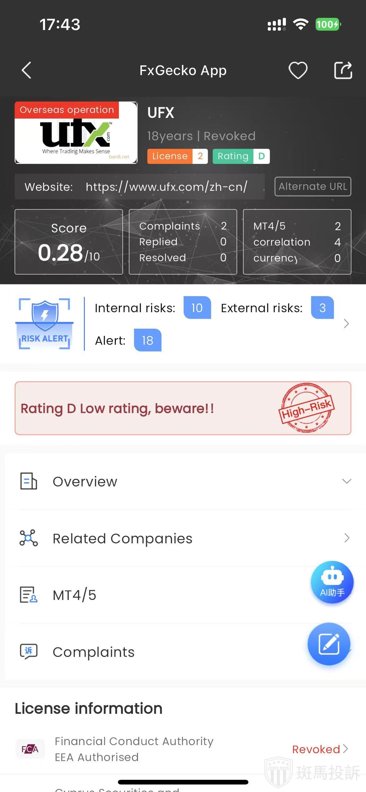 1. **Regulatory Status**: As mentioned earlier, the regulatory licenses that UFX once held have been revoked. This means that from a regulatory standpoint, UFX may currently lack sufficient legitimacy to ensure the safety of investors' funds and service quality.