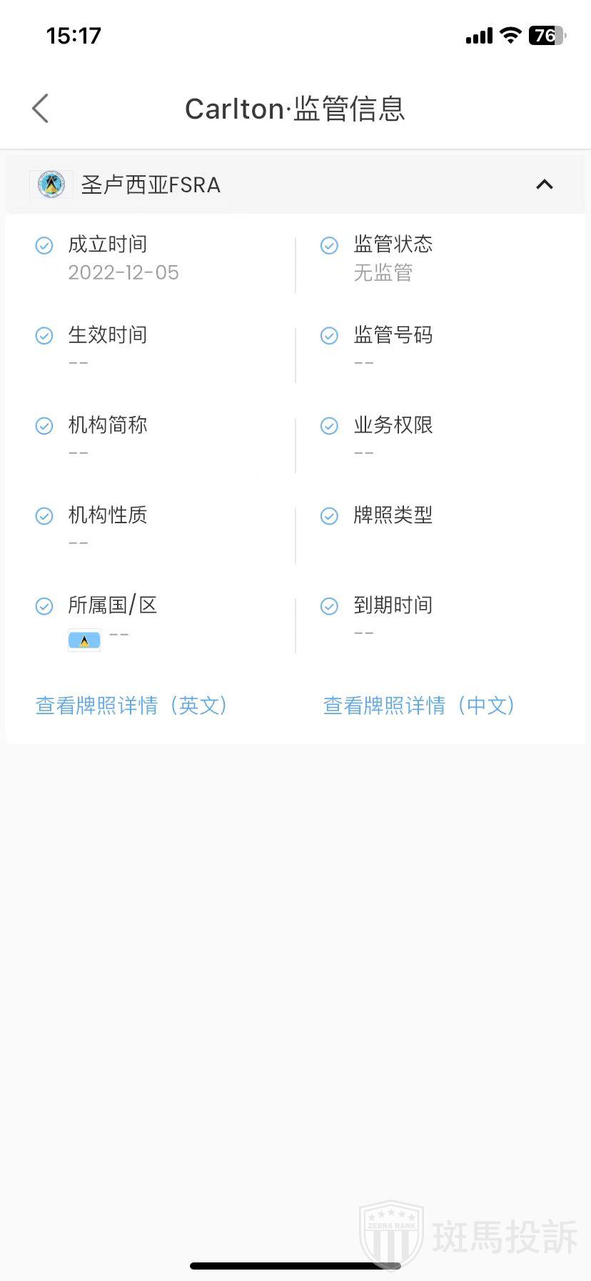 Despite Carlton's claims, FTI records reveal only one regulatory information entry, indicating an unregulated status under the Financial Services Regulatory Authority (FSRA) of Saint Lucia. This poses significant risks to investor fund security.
