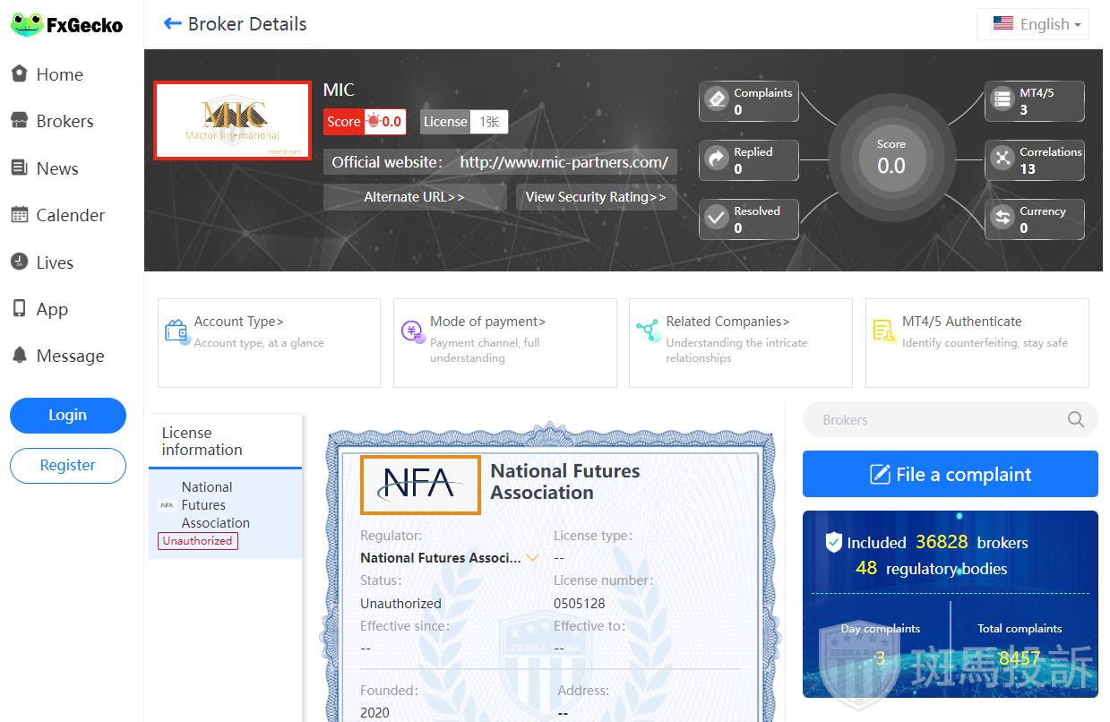 This broker is called MIC which was founded 3 years ago and is ranked 3939 in the world . Currently, no valid licensing information has been found for MIC, which is a high risk sign, beware!