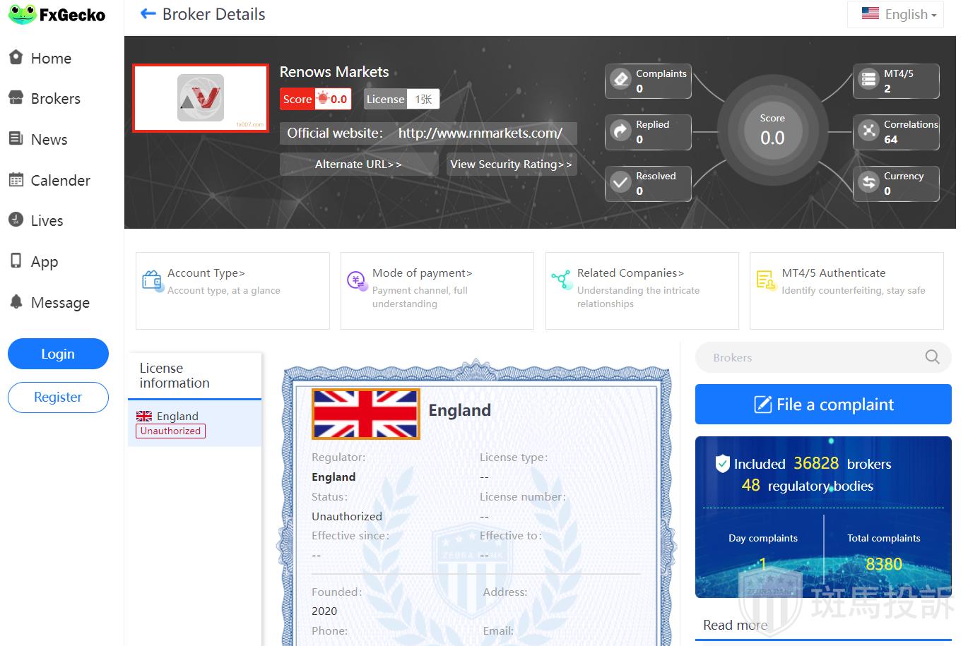 This broker is called Renows Markets which was founded 3 years ago and is ranked 5191 in the world. Currently, no valid licensing information has been found for Renows Markets, which is a high risk sign, beware!