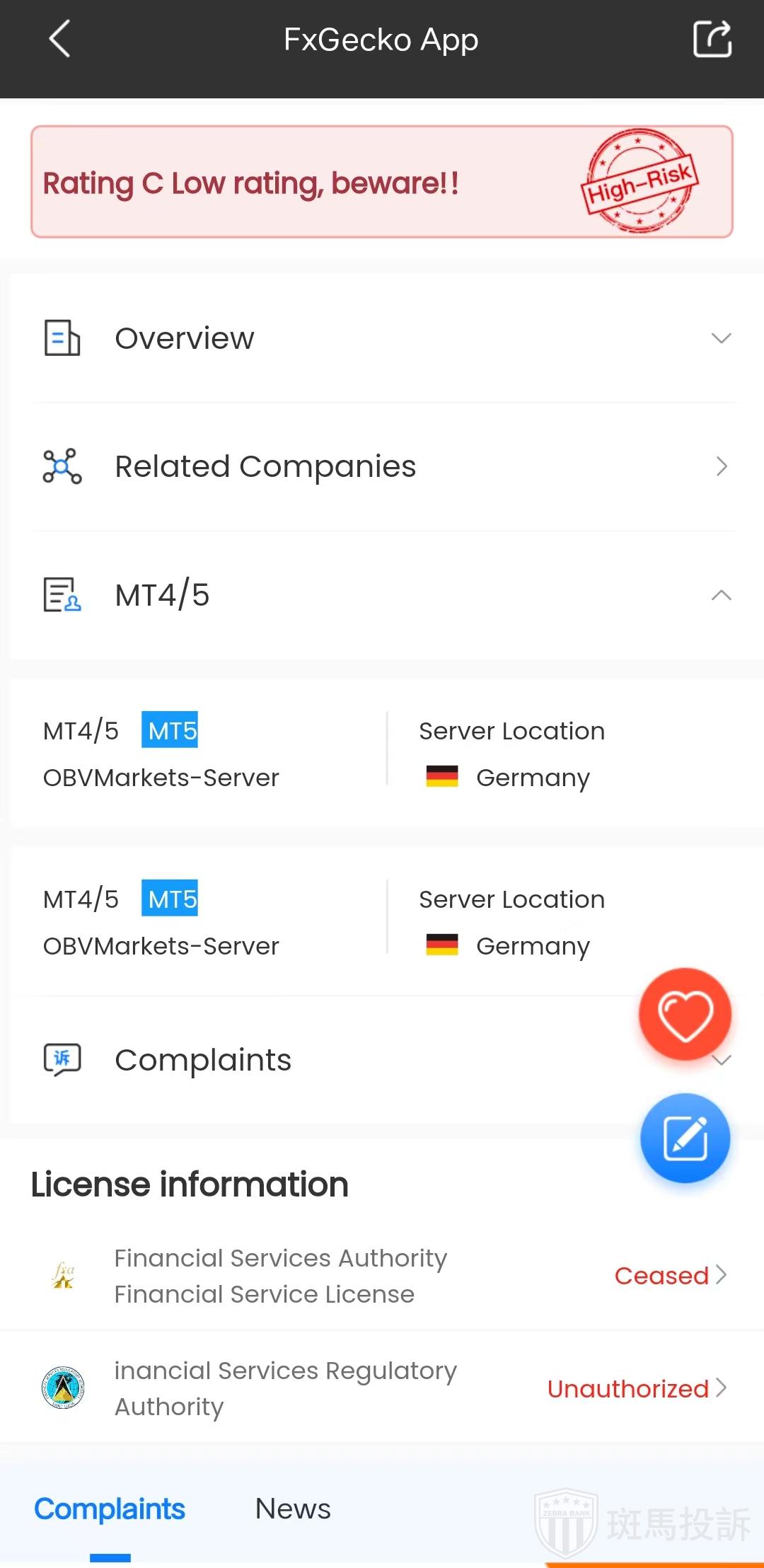 FTI has received 3 complaints about OBV Markets forex broker so far.