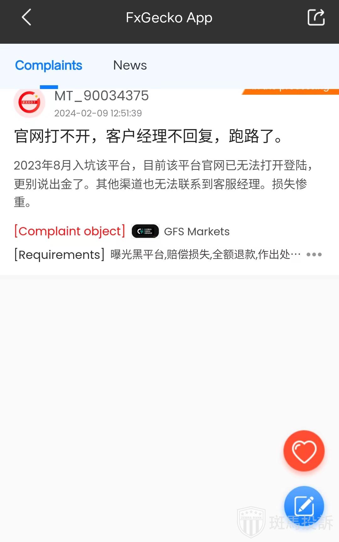 FTI has received 1 complaints about GFS Markets forex broker so far.