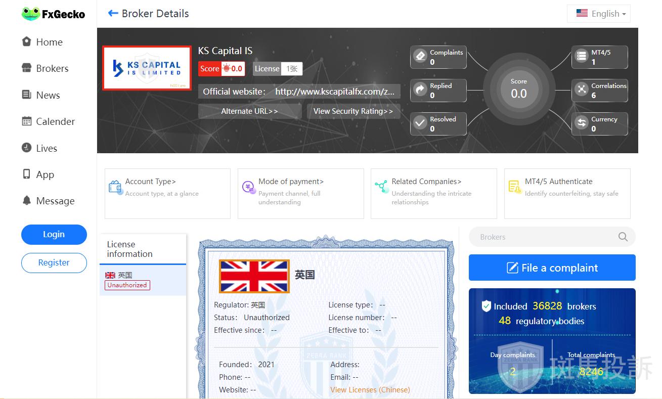 This broker is called KS Capital IS, which has been established for one year and ranks 3531 in the world. At present, there are 0 foreign exchange licenses, and the risk scan shows 1 risks. Investors need to pay attention to relevant risks.