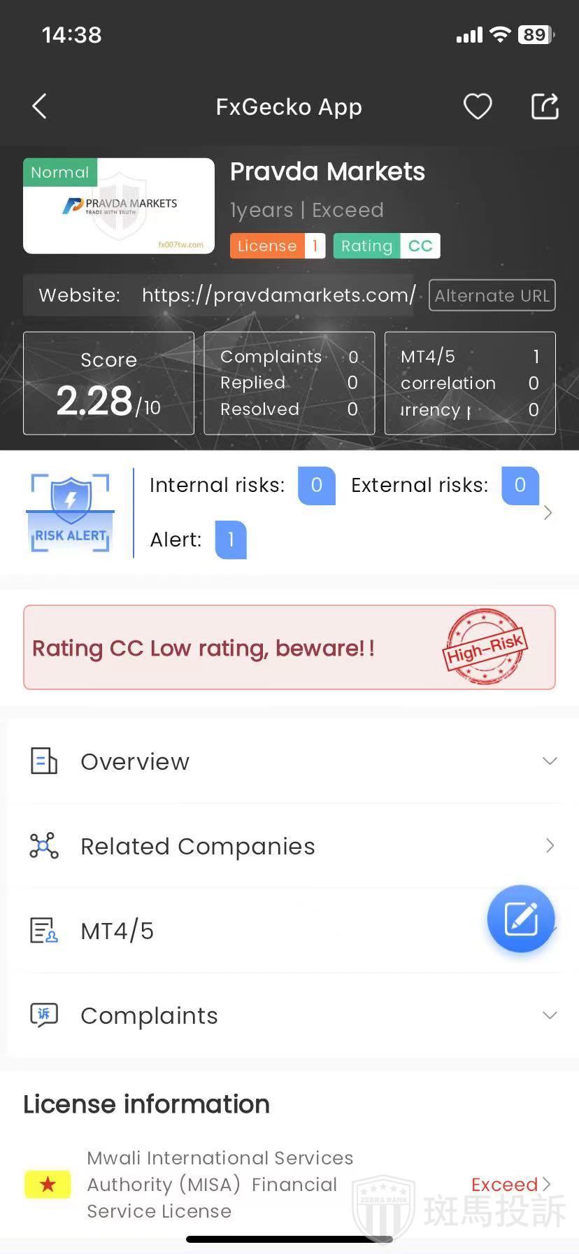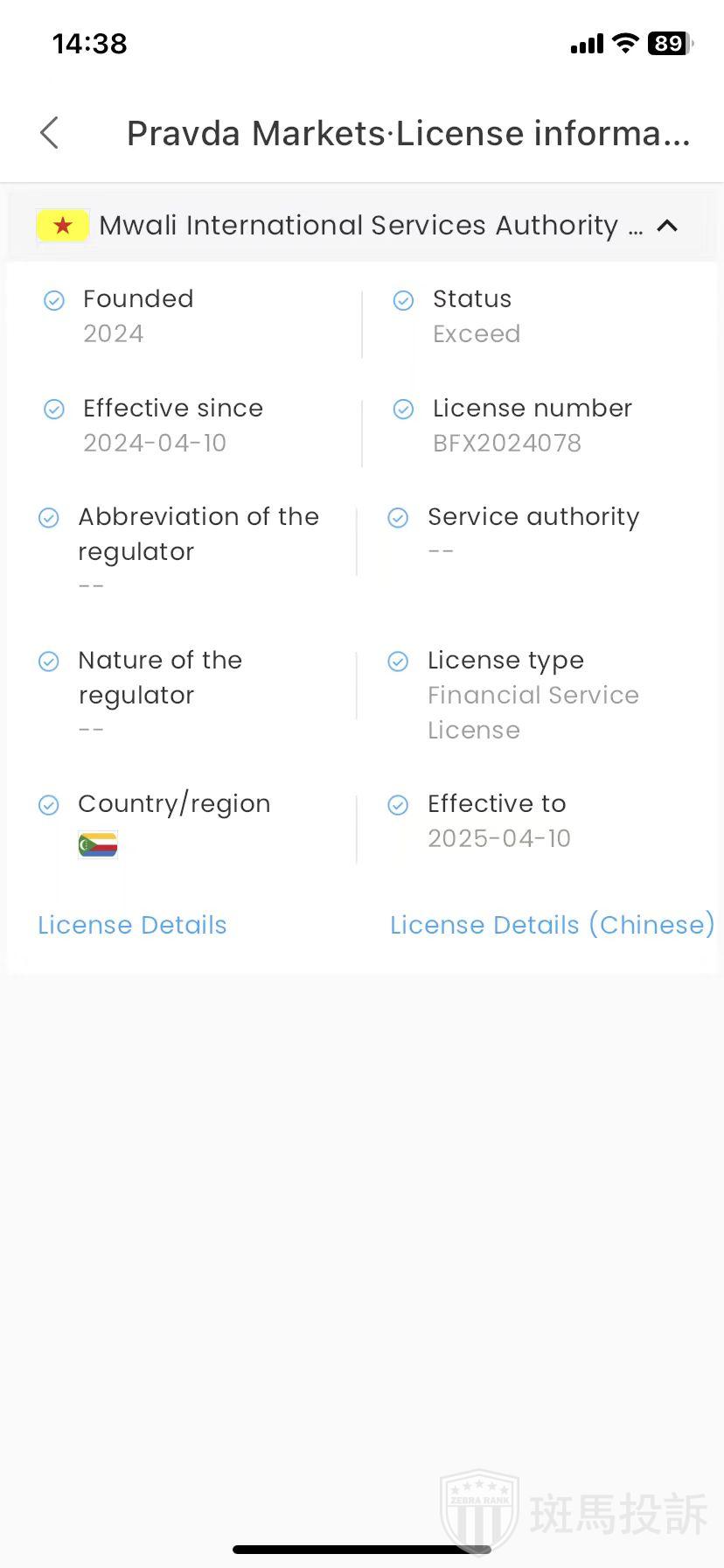 Important Alert:According to FTI, Pravda Markets holds a single regulatory status with MISA (Malawi Investment and Savings Association), marked as 'operating beyond its authorized scope.' This poses significant risks to investor fund security.