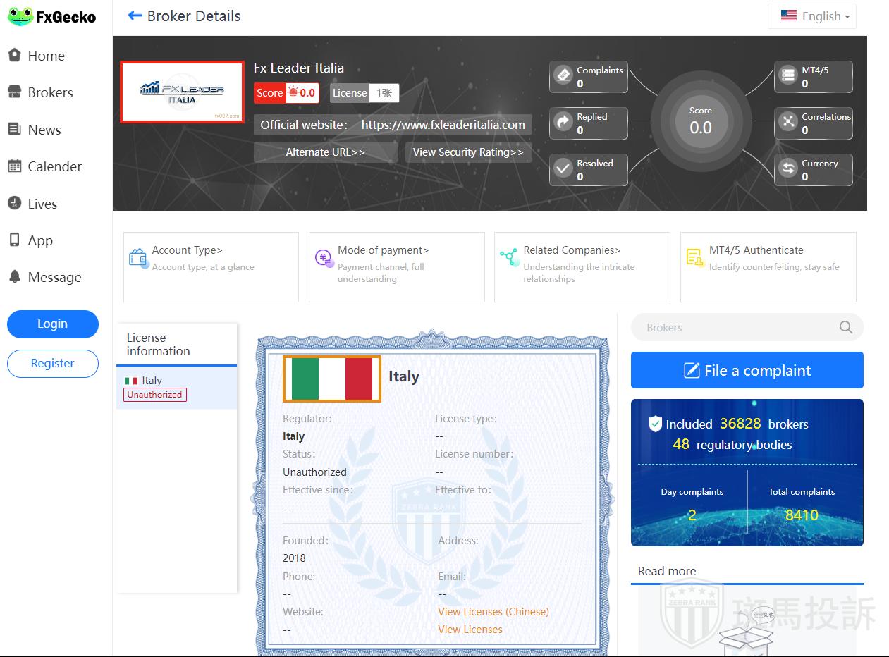 Fx Leader Italia has not received the complaint information in FTI yet.