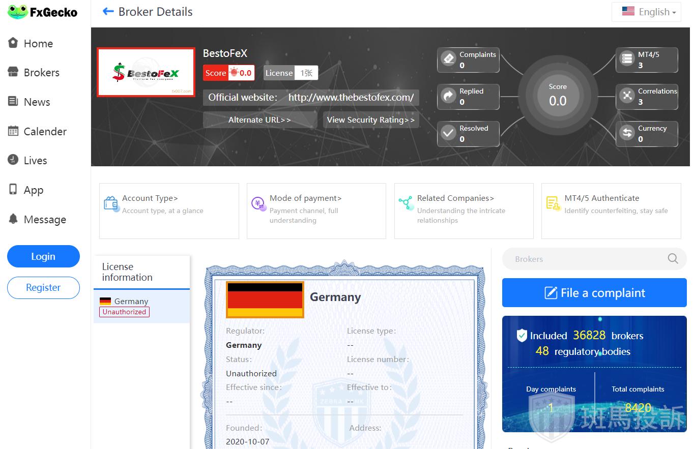 This broker is called BestoFeX which was founded 3 years ago and is ranked 4580 in the world. Currently, no valid licensing information has been found for BestoFeX, which is a high risk sign, beware!