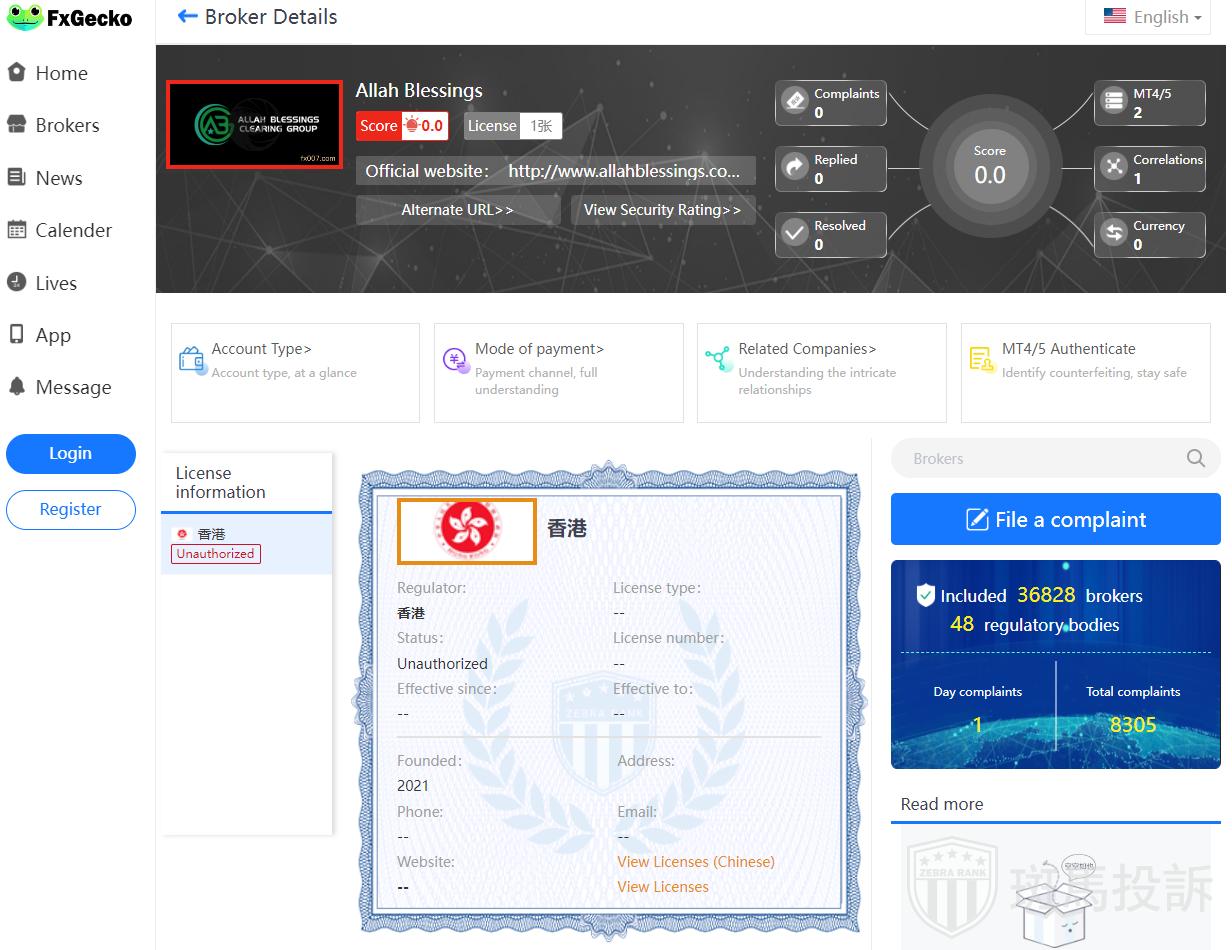 This broker is called Allah Blessings, which has been established for one year and ranks 3362 in the world. At present, there are 1 foreign exchange licenses, and the risk scan shows 3 risks. Investors need to pay attention to relevant risks.