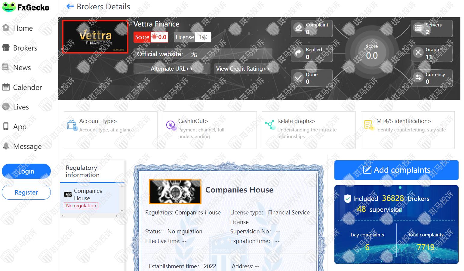 This broker is called Vettra Finance which was founded less than 1 year ago and is ranked 4210 in the world. At present, there are 0 foreign exchange licenses, and the risk scan shows 3 risks. Investors need to pay attention to relevant risks.