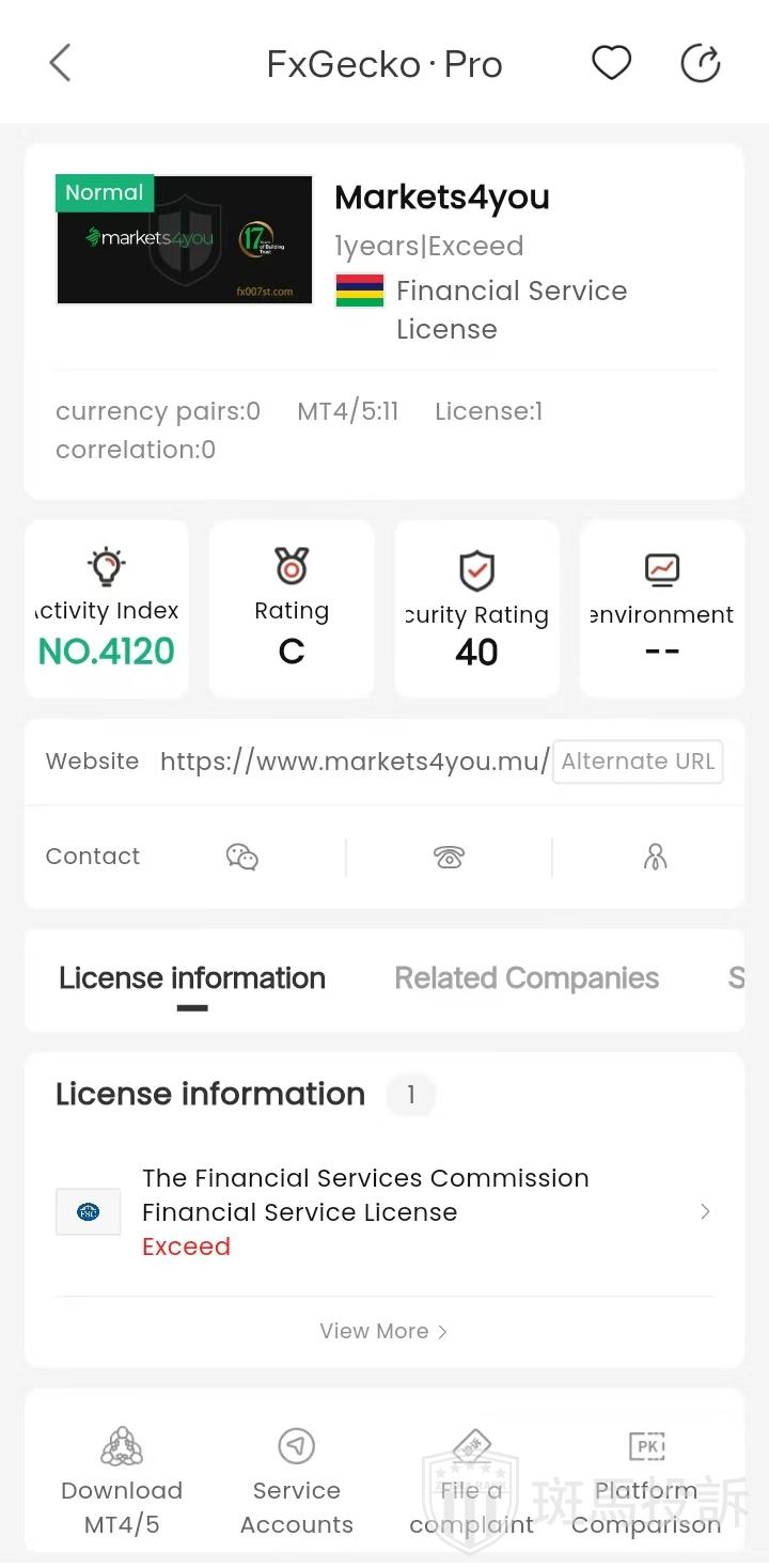① Broker Name: Markets4you(formerly Forex4you)