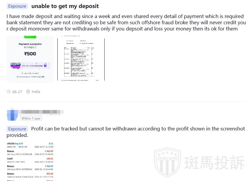 ⑤ Investor Complaints: Reported withdrawal denials after profits