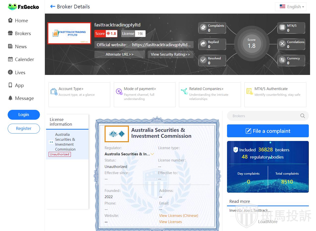 Currently, no valid regulatory information has been found for fasttracktradingptyltd, which is a high risk sign, beware!