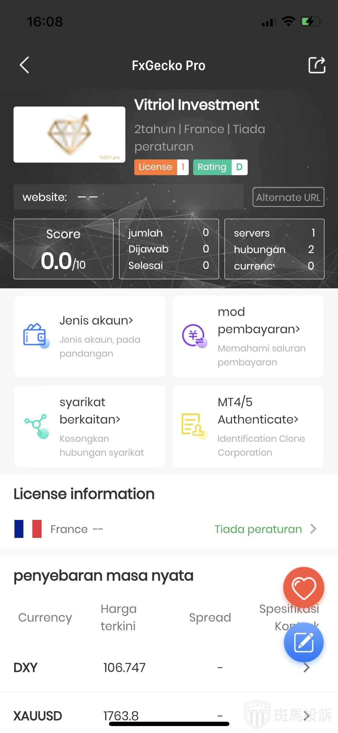 This broker is called Vitriol Investment, which has been established for one year and ranks 5605 in the world. At present, there are 0 foreign exchange licenses, and the risk scan shows 13 risks. Investors need to pay attention to relevant risks.