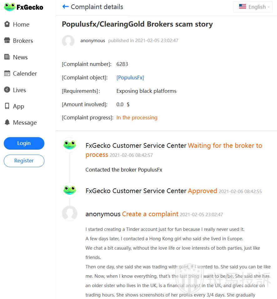 FTI has currently received 1 complaints about PopulusFx. Beware!