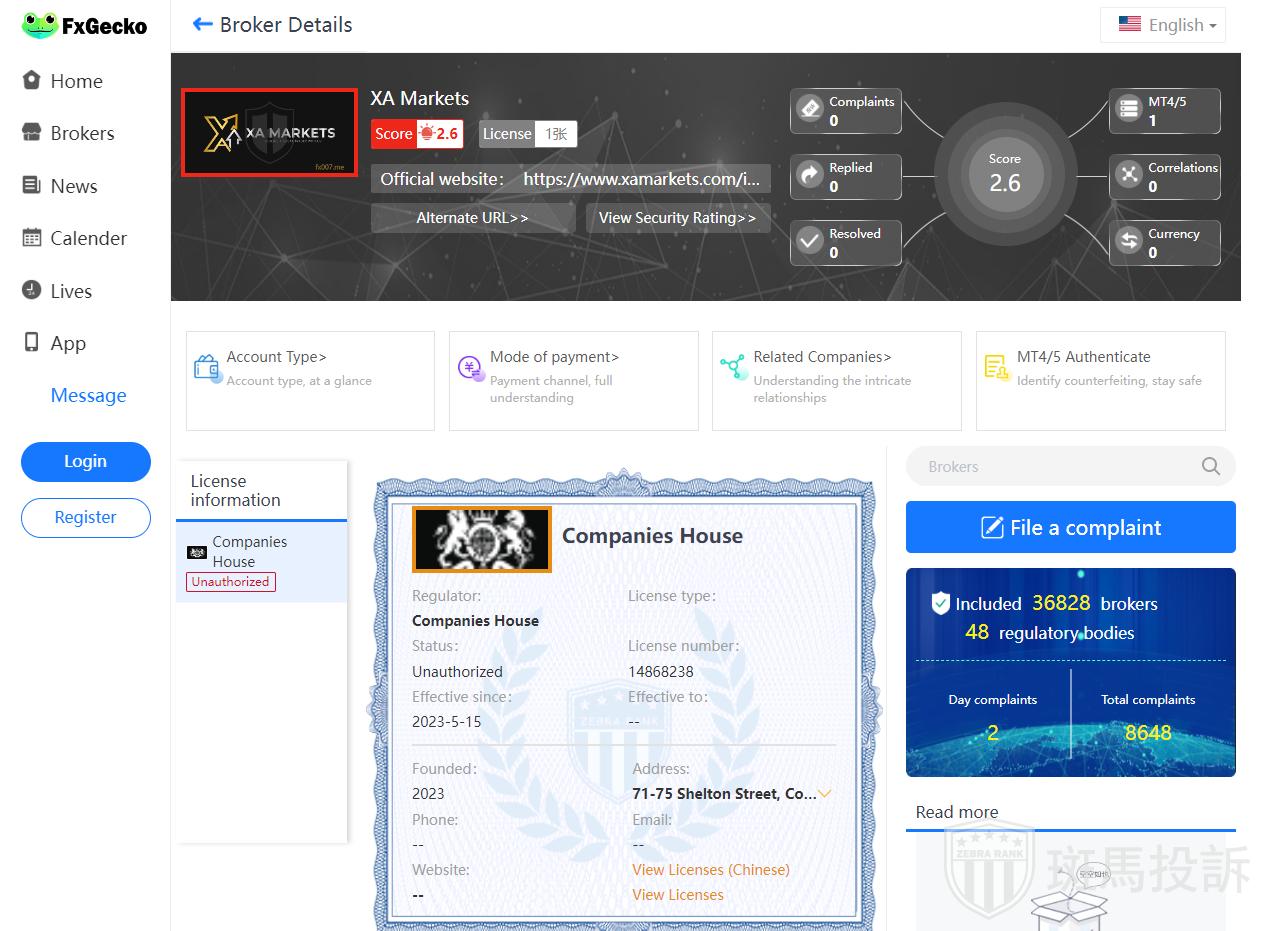 FTI risk warning shows that XA Markets has 2 risks. Investors need to pay attention to the relevant risk alerts for this broker.