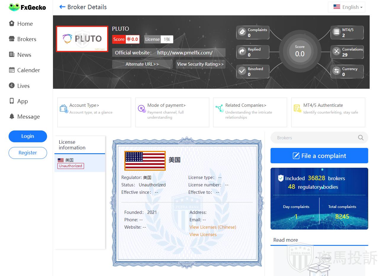 This broker is called PLUTO, which has been established for one year and ranks 4017 in the world. At present, there are 1 foreign exchange licenses, and the risk scan shows 12 risks. Investors need to pay attention to relevant risks.