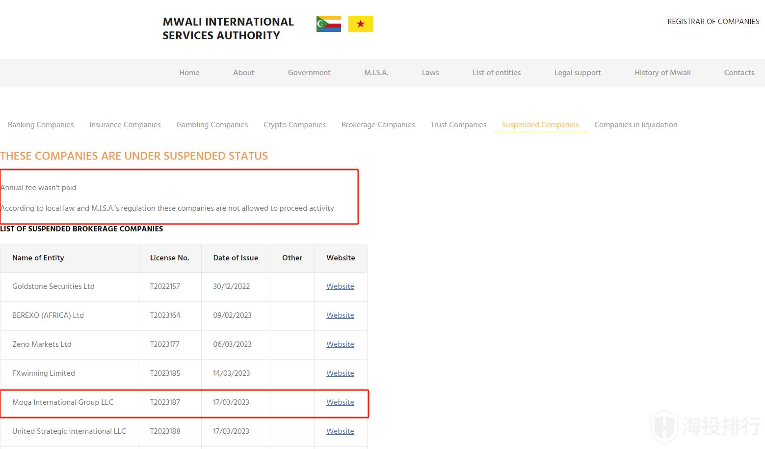 Regulatory licences are an important measure of a broker's reliability; MogaFX had claimed to have four financial regulatory licences, but after our investigation, there is no valid information on the financial services licence regulated by the FSA in St. Vincent, the licence regulated by MISA in Mwali has been suspended due to non-payment of the annual fee, and the financial regulation by the FSP in New Zealand has already expired on the 29th of August 2023 without being renewed. Currently, MogaFX only has the MM Market Maker licence from ASIC in Australia left, which undoubtedly casts a shadow over the safety of investors' funds.