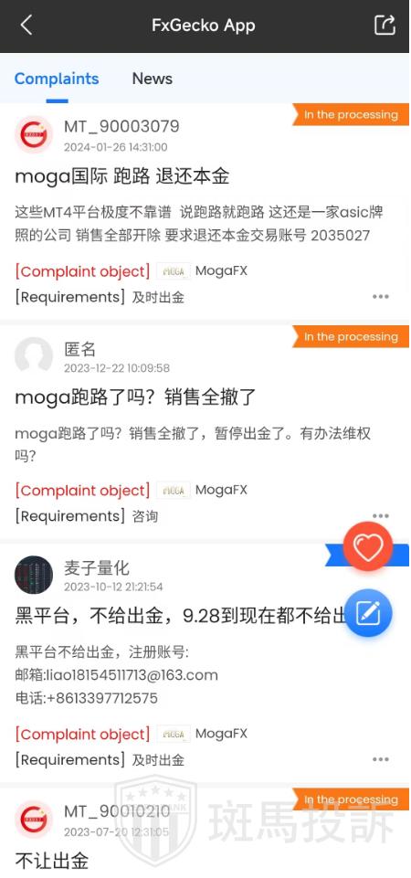 Most seriously, MogaFX has had problems with customer complaints. Currently, there are 4 customer complaints on record, which are mainly related to the platform running away, full withdrawal of sales, and failure to give out funds. These issues not only harm the interests of investors, but also expose the platform's deficiencies in risk control and customer service.