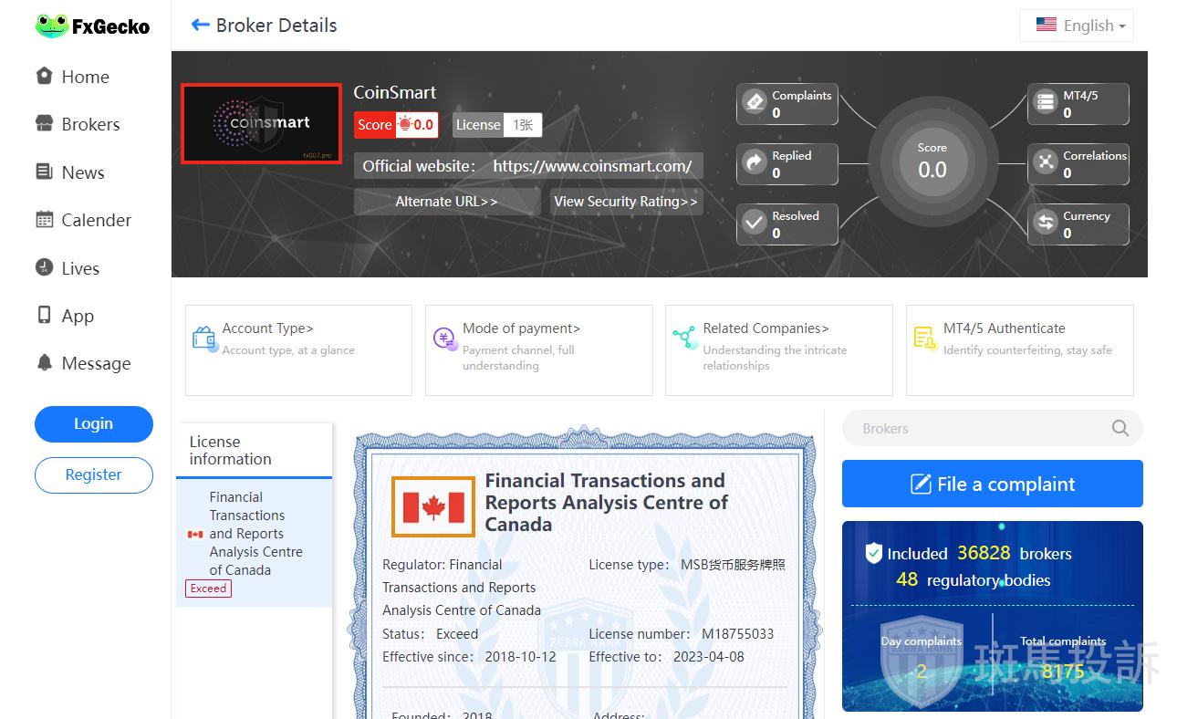 This broker is called CoinSmart, which has been established for five year. At present, there are 1 exchange license, and the risk scan shows 3 risks. Investors need to pay attention to relevant risks.