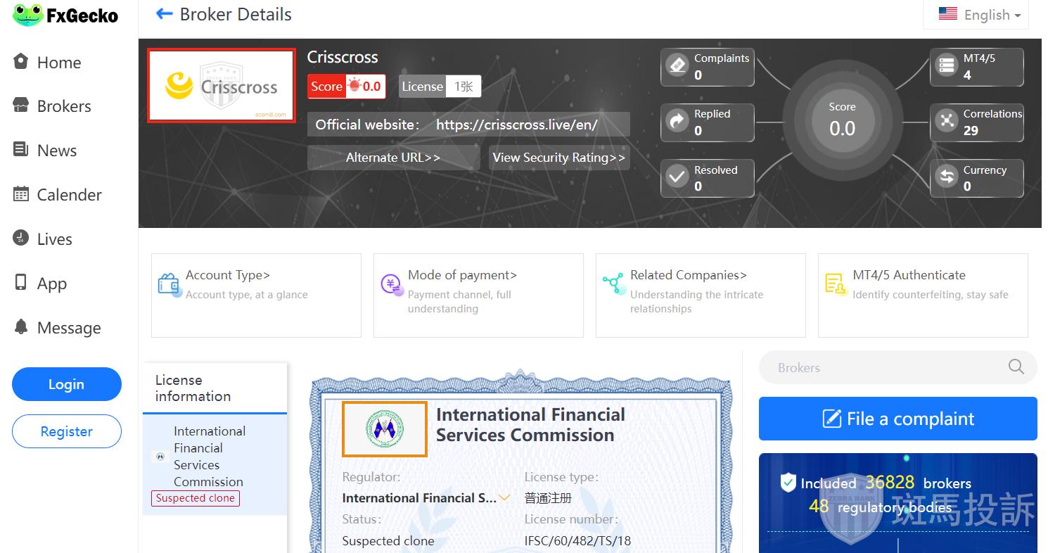 This broker is called Crisscross which was founded less than 2 year ago and is ranked 3115 in the world. Currently, no valid licensing information has been found for Crisscross, which is a high risk sign, beware!