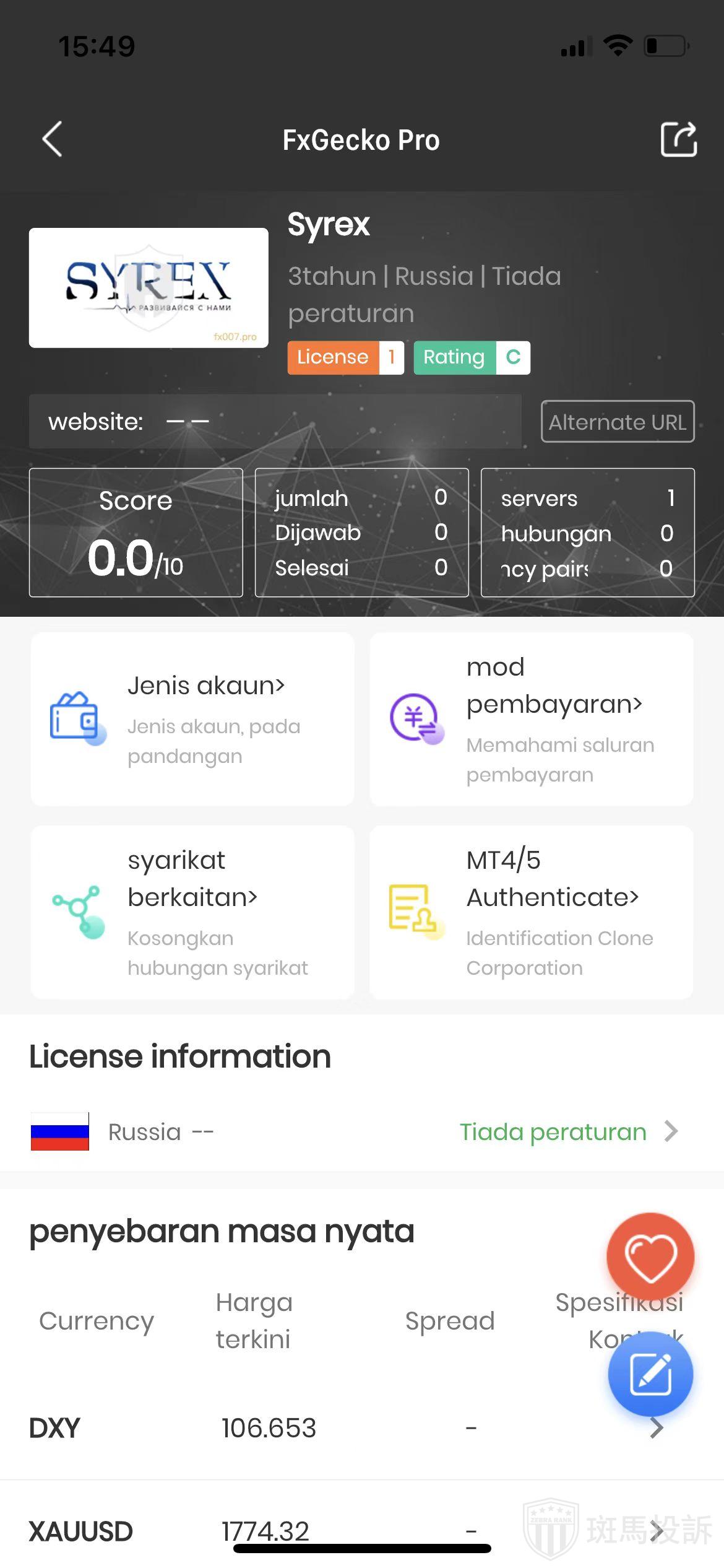 This broker is called Syrex, which has been established for one year and ranks 4125 in the world. At present, there are 0 foreign exchange licenses, and the risk scan shows 13 risks. Investors need to pay attention to relevant risks.