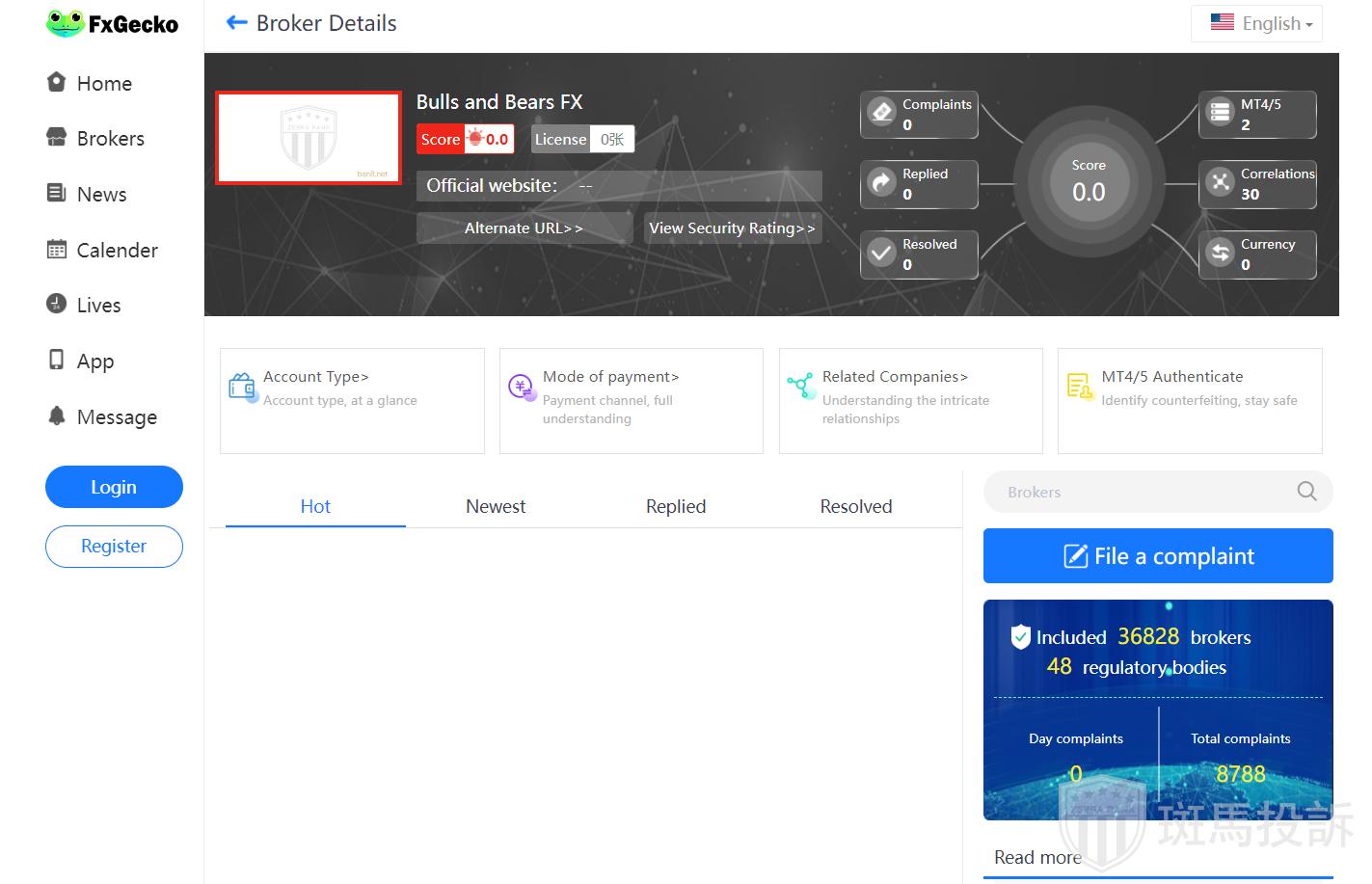 FTI has not received any complaints about Bulls and Bears FX forex broker at the moment.