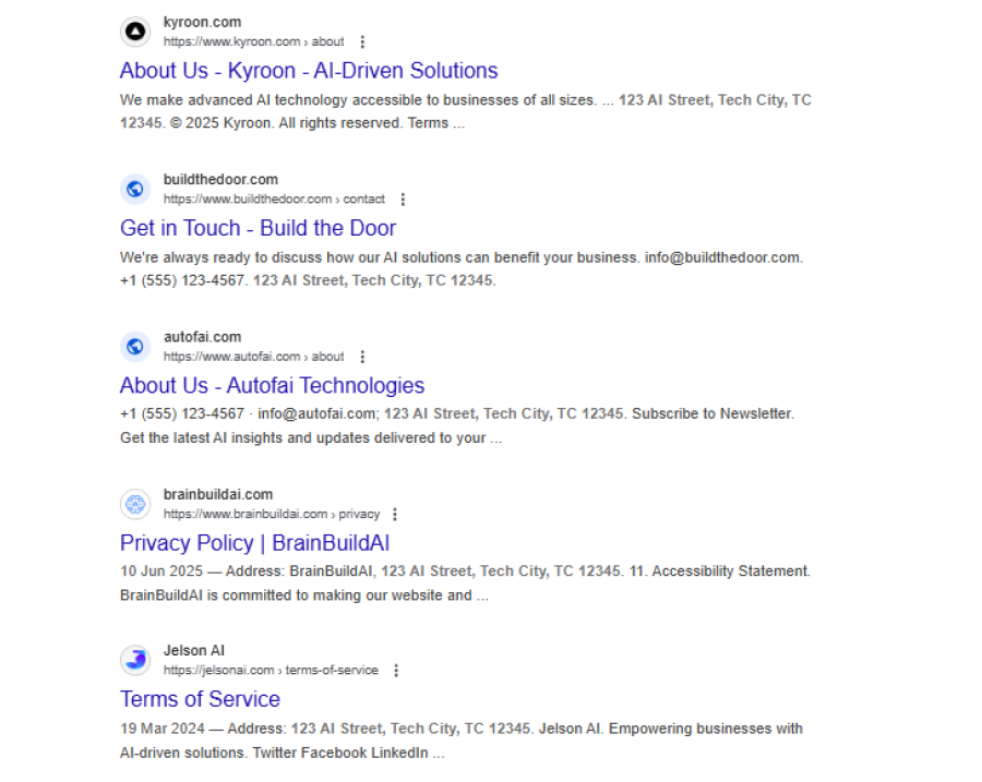 Mintx1.com claims to be located at“123 AI Street, Tech City, TC 12345.”At first glance, this might look like a legit tech-savvy location. But here's the catch: this exact address is also listed on several other unrelated websites. It’s like walking down your street and seeing five completely different businesses claiming to be at the same house. Suspicious? Absolutely.
