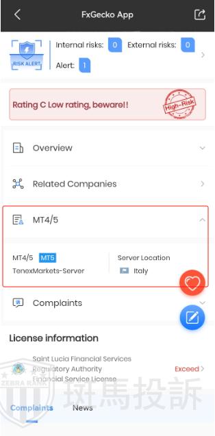 The official website of Tenex Markets platform claims that it is registered in Saint Lucia and holds an International Brokerage Clearing House license with license number 2025-00197. Upon inquiry, it is found that it does hold the license, but the Saint Lucia IFC has no authority to regulate foreign exchange transactions. This still poses certain potential risks to investors, and we hope that investors will be vigilant.