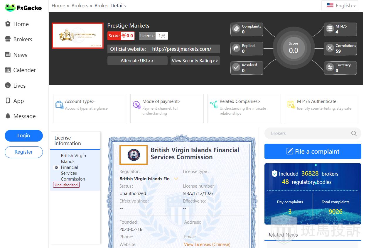 FTI risk warning shows that Prestige Markets has 52 risks. Investors need to pay attention to the relevant risk alerts for this broker.