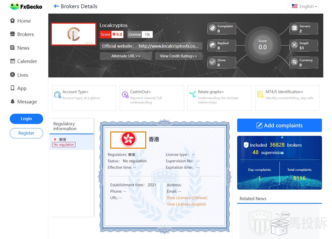 This broker is called Localcryptos, which has been established for one year and ranks 3873 in the world. At present, there are 1 foreign exchange licenses, and the risk scan shows 15 risks. Investors need to pay attention to relevant risks.