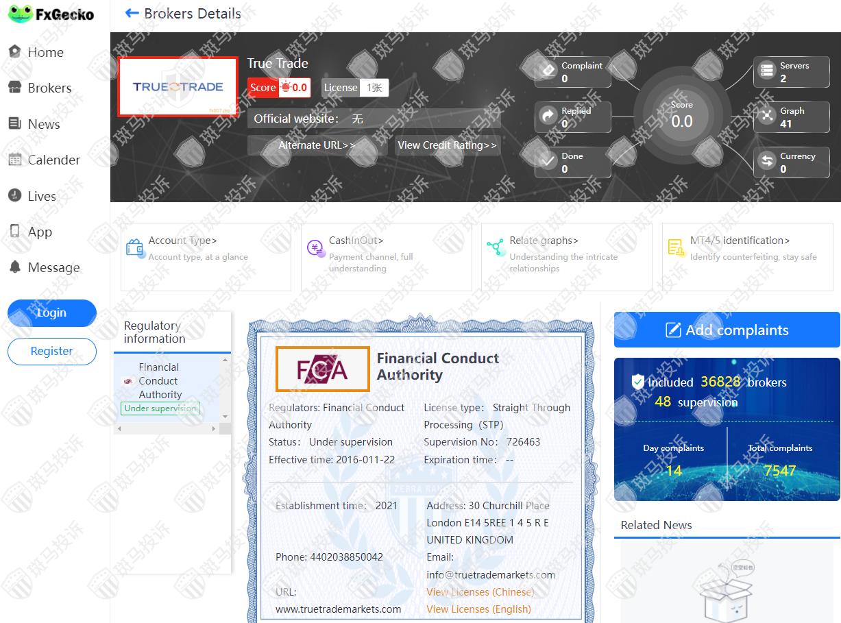This broker is called True Trade, which has been established for one year and ranks 1077 in the world. At present, there are 1 foreign exchange licenses, and the risk scan shows 3 risks. Investors need to pay attention to relevant risks.