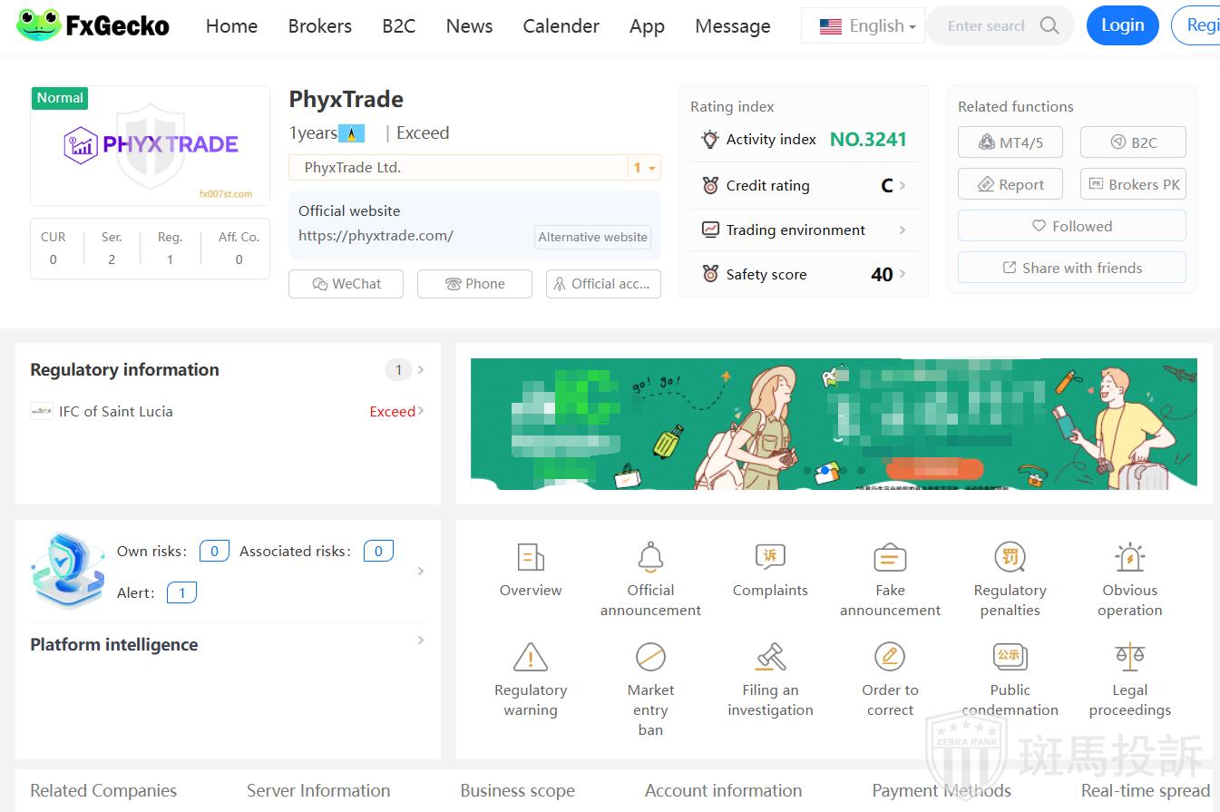 While the company is registered in Saint Lucia IFC, this entity does not provide oversight or investor protection for forex trading. Investors dealing with Phyx Trade may not have regulatory recourse if disputes arise.